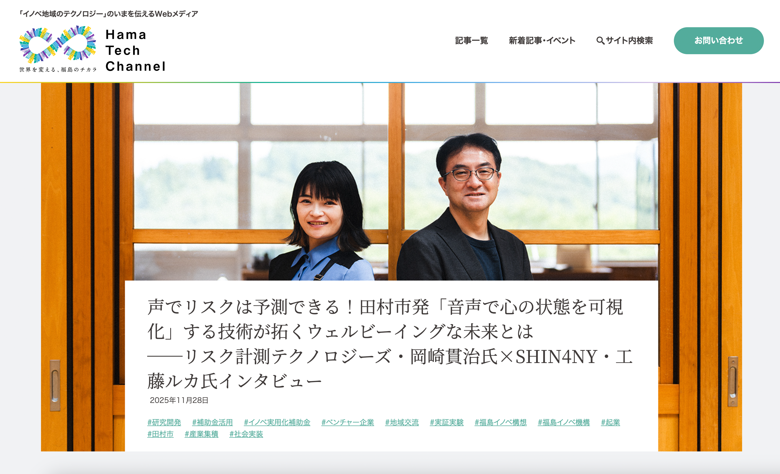 この度、「イノベ地域のテクノロジー」のいまを伝えるWebメディア「Hama Tech Channel」にSHIN4Naomi代表の工藤と岡崎のインタビューが掲載されました!